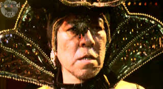 a bespangled drag queen singing bad J-pop. Badly.